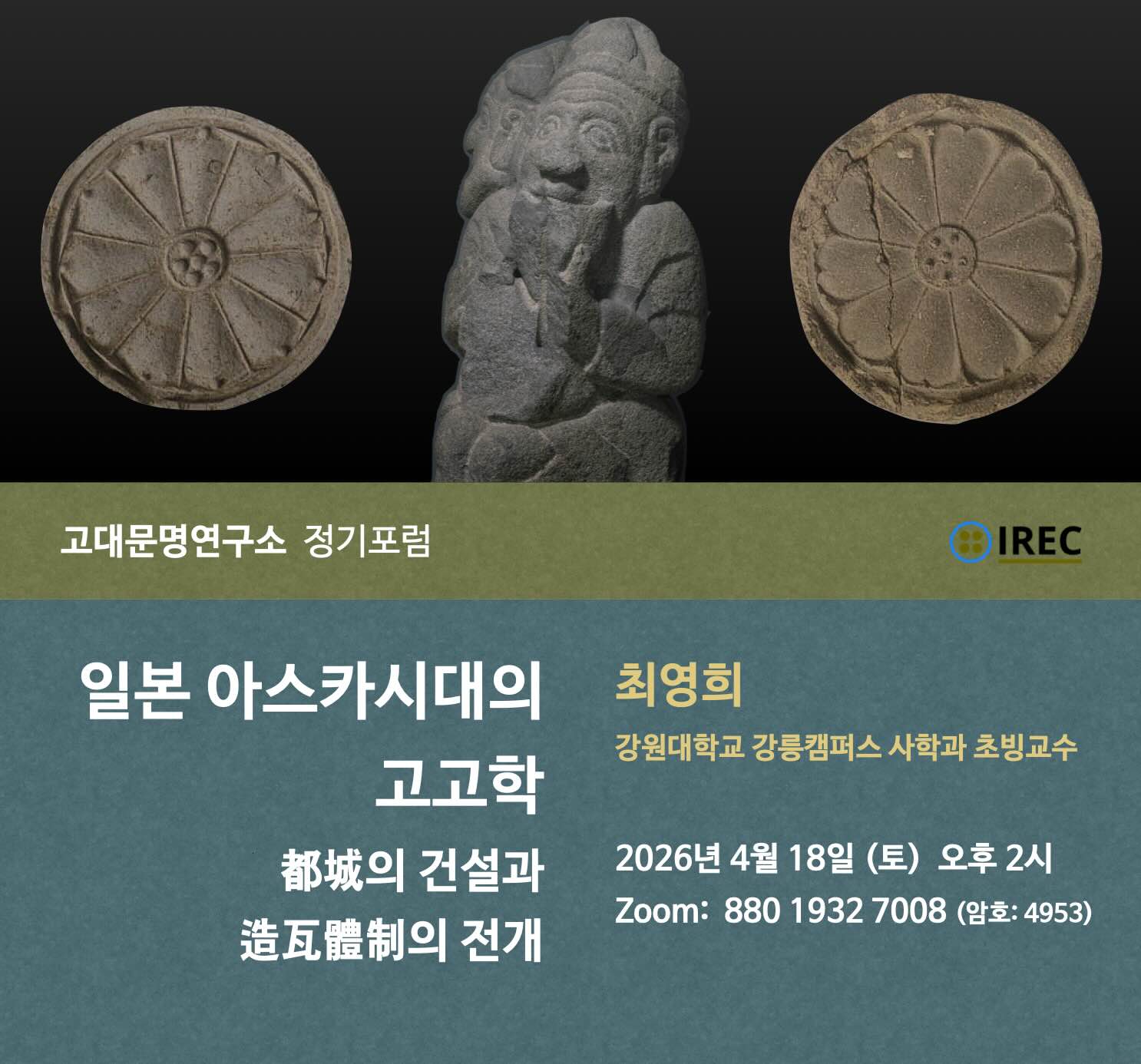이번 강연은 일본고고학 시리즈의 최종편입니다. 총 5회에 걸쳐 조몬시대부터 야요이, 고분시대를 거쳐 마지막으로 아스카와 나라시대까지 이어지는 일본 고대문명 강연을 고대문명연구소 정기포럼에서 진행해왔습니다. 일본고고학 시리즈 마지막까지 많은 관심 부탁드립니다.